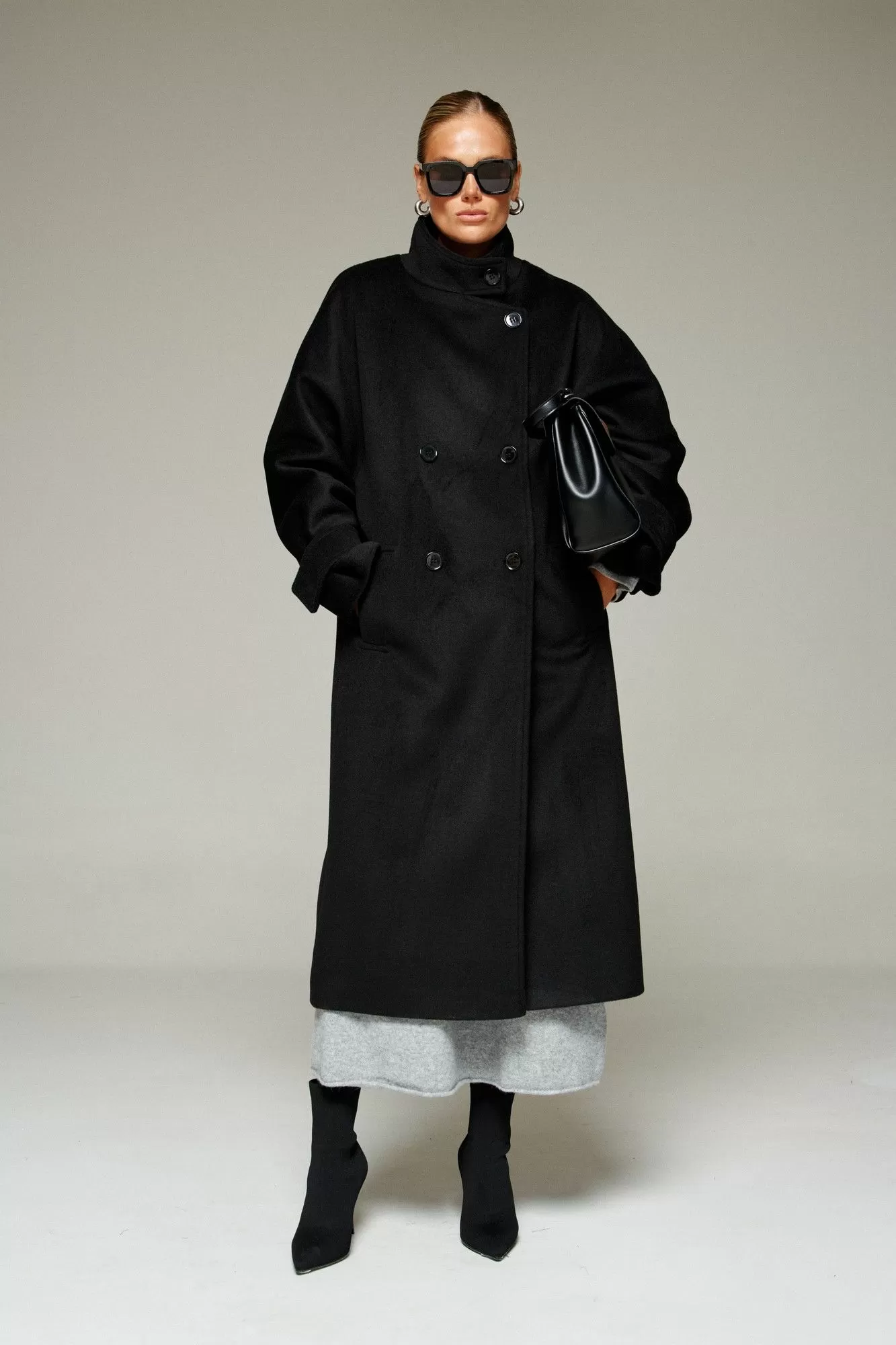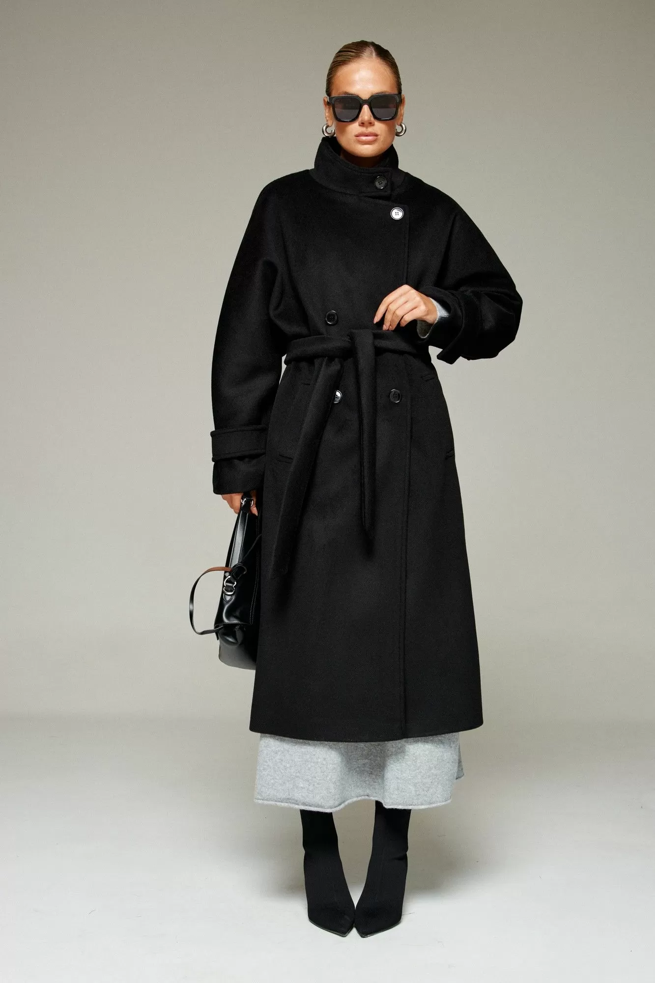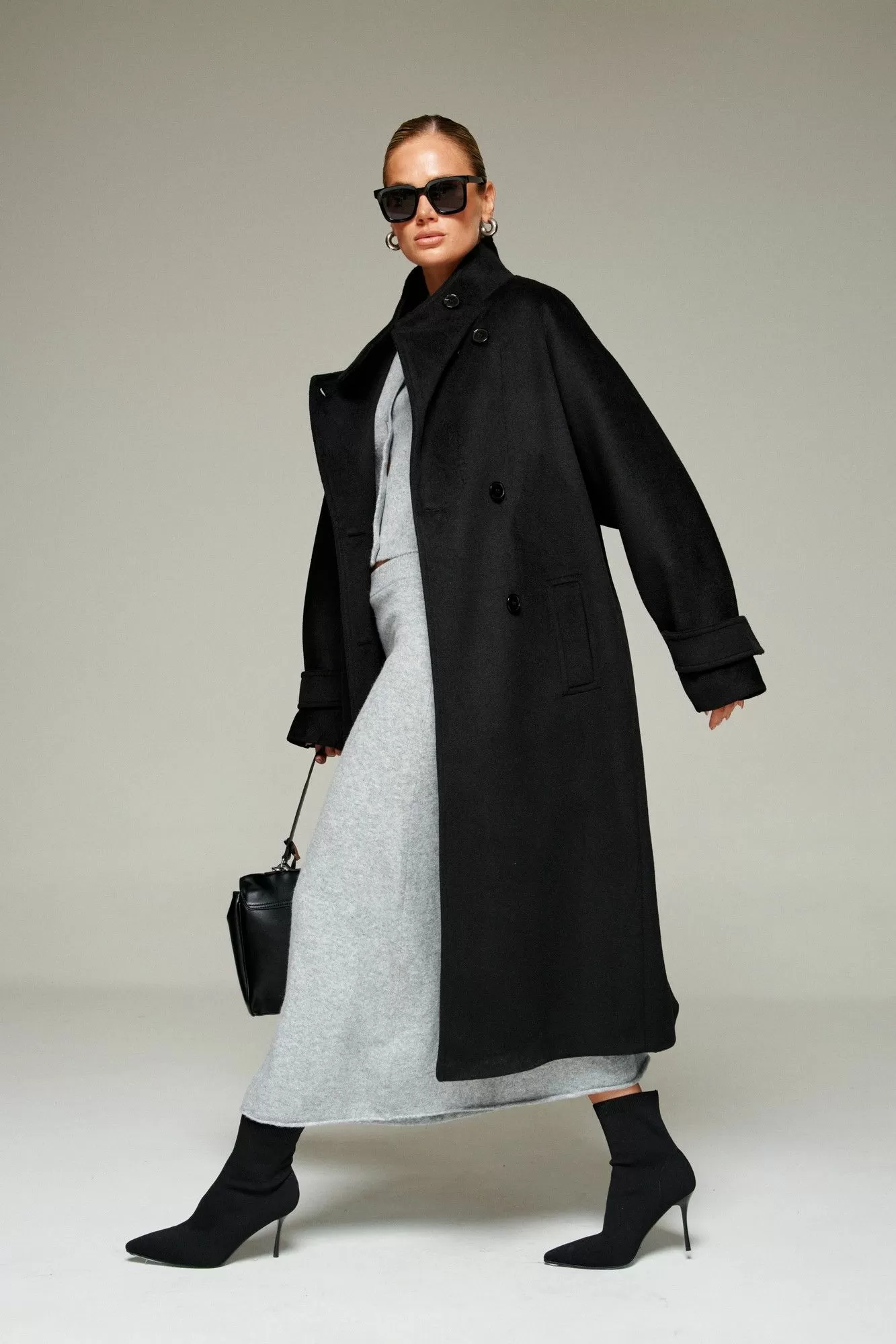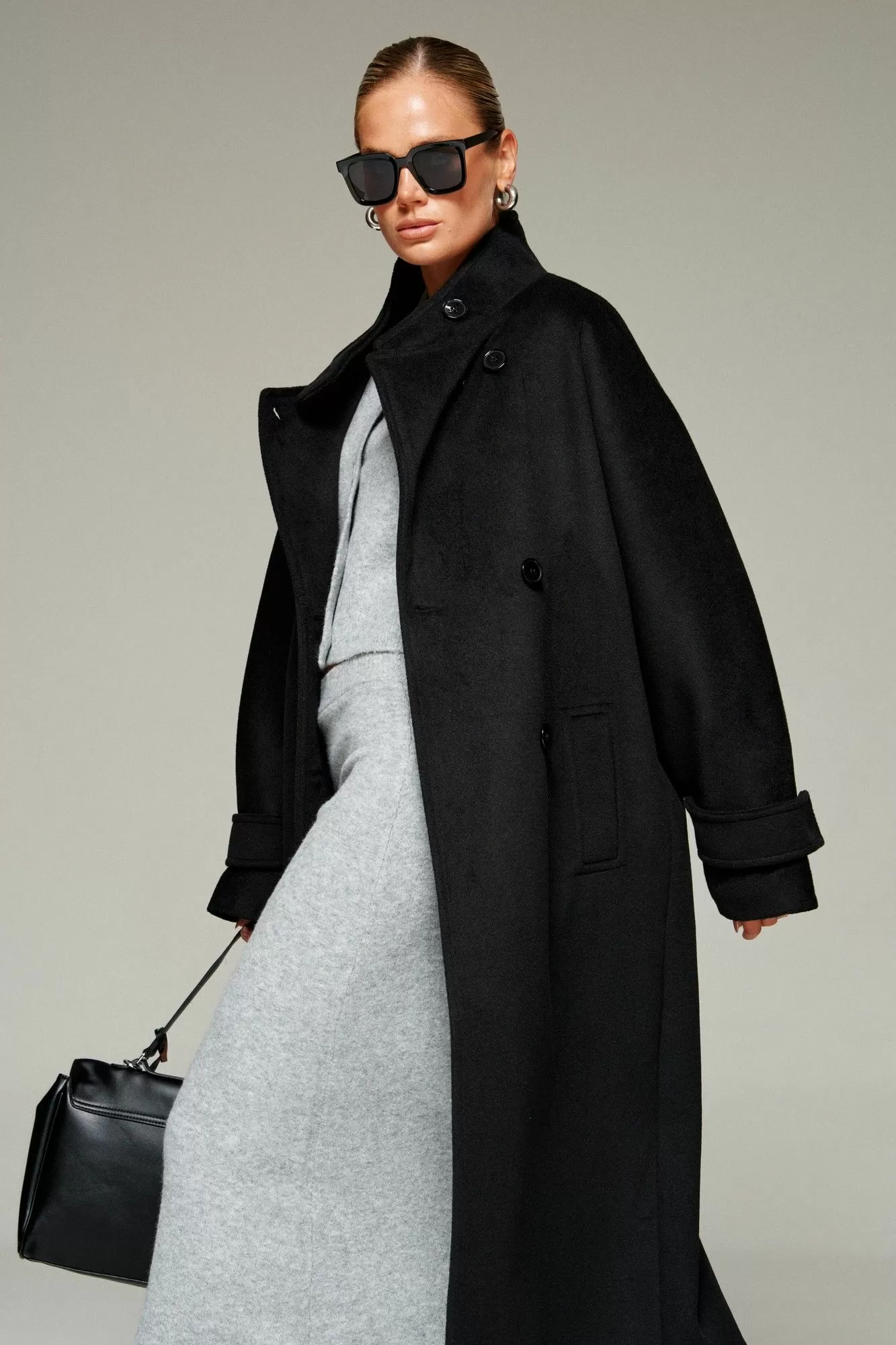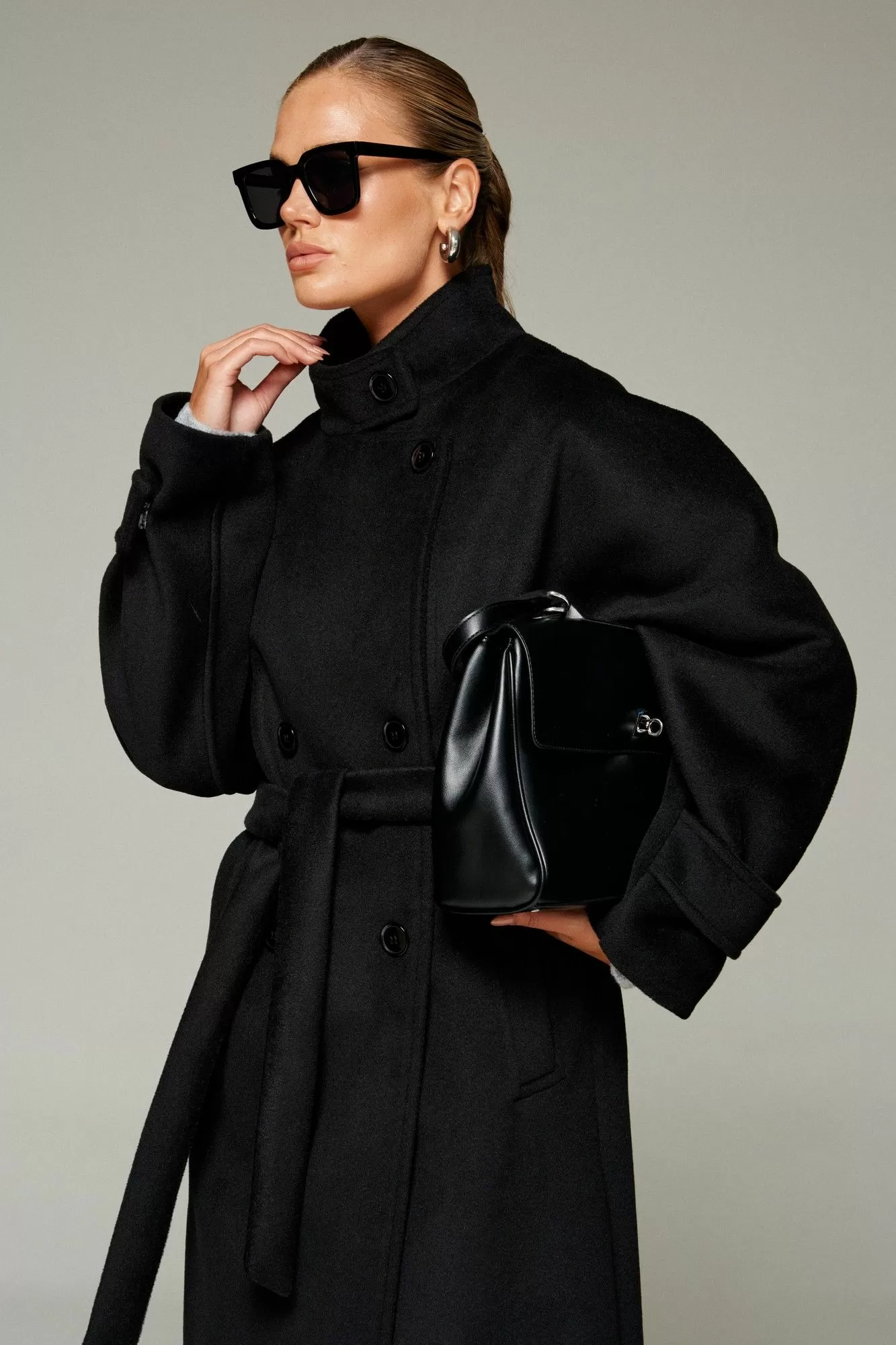 Пальто выполнено из шерстяной ткани, которая обеспечивает теплоизоляцию и защиту от ветра и влаги, подходит для межсезонья и теплой зимы. Двубортное, на подкладке. Изделие рассчитано на температурный режим от +10 до -5 градусов. Модель прямого силуэта актуального покроя «летучая мышь»; предназначена для повседневного использования.
